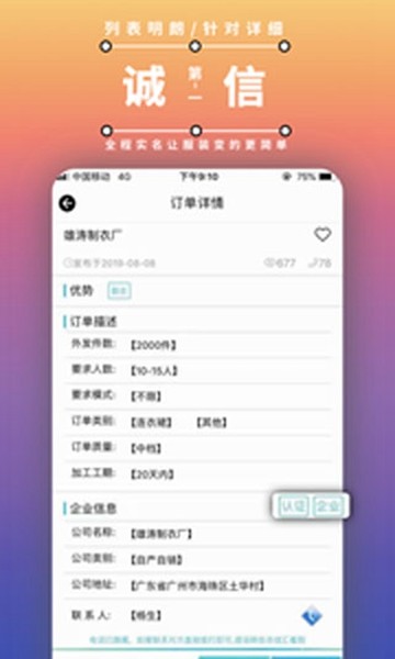 服装衣信汇App是一款专门为服装行业打造的全新服装信息链,为用户打造了一个全方位的信息资源体系,帮助用户创造更多的利益价值。在服装衣信汇中,用户需要全程实名,保障了用户之间订单交易安全,为用户提供了全国内部通货的货源订单,让服装行业的货源流通更顺畅、更便捷。此外,软件内拥有详细的订单详情,分类明确,用户可以通过软件清晰明了的了解到所有的订单信息。