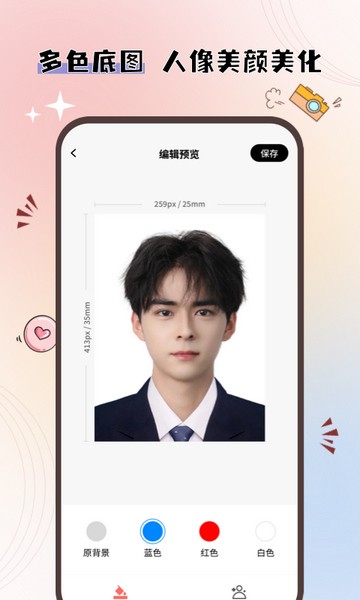 另外,它还能一键更换背景色,这对我来说真的太方便了。以前拍证件照还得去照相馆换背景,现在用手机就能搞定。而且软件里还有一些智能识别功能,可以自动把人像抠出来,背景处理得很干净,完全不用担心边缘模糊的问题。