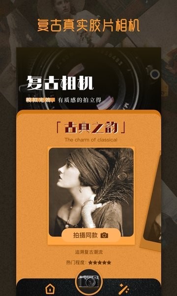 1、拥有拟物化设计,整个软件风格还原真实胶片相机的样式,包括快门声音、胶卷外形等;