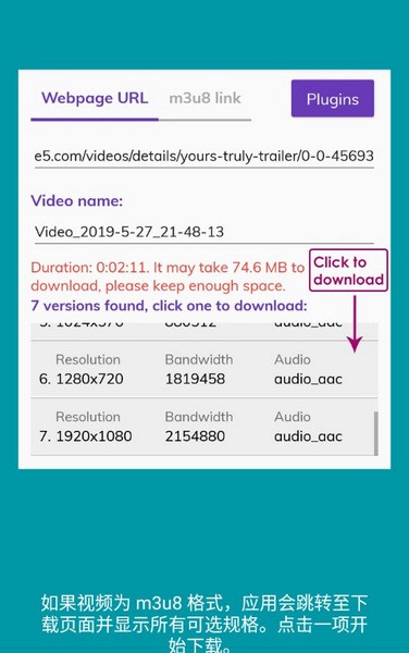 下载 m3u8/mp4/mpd/mov 格式视频。