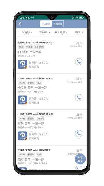 1、丰富的货源,可帮助每一位司机用户轻松找到可以运输的货源;