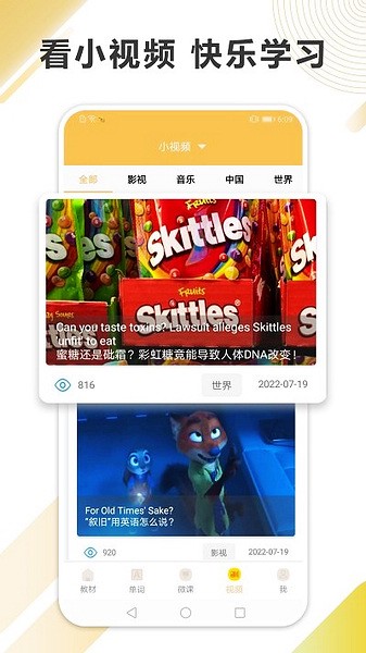 4、视频控制模块。看过大空间VOA、BBC、TED、美语怎么说等精彩纷呈的视频,国外的原声带内容提升了英语口语soteasy!