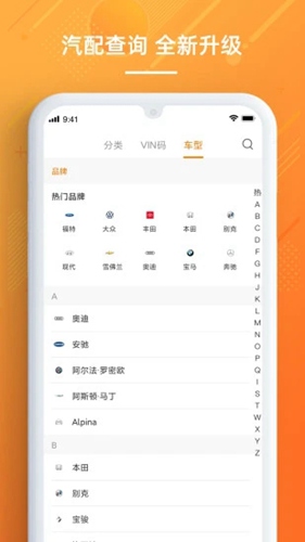 1.车型配件一键查询,支持分类查询、VIN查询、车型查询。