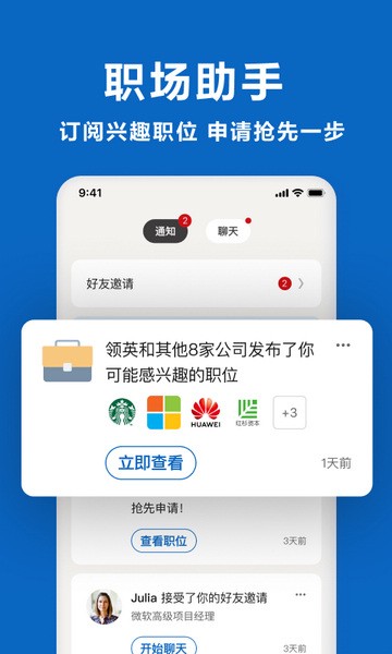 领英职场app是一款非常实用的求职招聘软件,主要功能是帮助用户找到合适的工作岗位,并为公司提供人才匹配服务。对于求职者来说,这款软件可以智能推荐海量精准职位,订阅感兴趣的工作机会,还能隐藏求职意向,避免被当前公司察觉。完善的个人档案也能大大提高求职成功率。而对招聘者来说,发布职位、管理招聘需求以及发送定制信息给候选人都是很方便的操作。