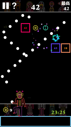 游戏操作十分简单直观,只需定好发射角度,然后用手指按住向后拖,像弹弓一样,松开手指,弹珠就会朝你想要的方向发射!弹珠每次碰撞砖块,砖块上的数字就会减一。每回合砖块会下移一次,当砖块碰到下面的白线时,游戏就结束了。