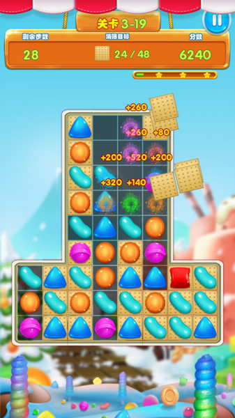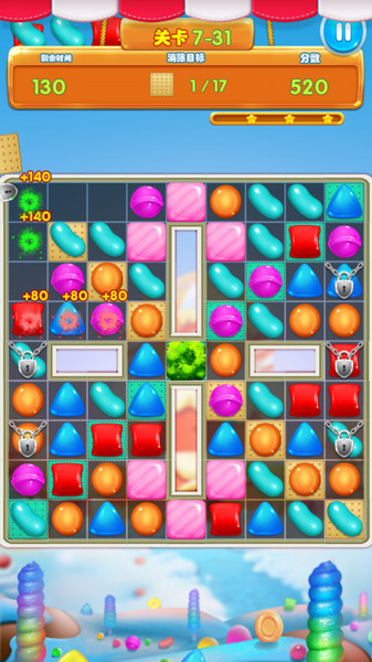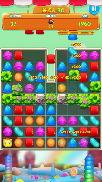 - 匹配三个或更多相同糖果消除糖果。