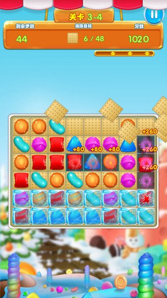 游戏里有297个关卡,每个关卡都有不同的挑战目标,而且还有各种道具可以使用,玩起来不会觉得无聊。最让我喜欢的是它的UI设计,不仅颜色搭配很甜,动画效果也很炫酷,每次消除糖果都会有不一样的视觉体验。