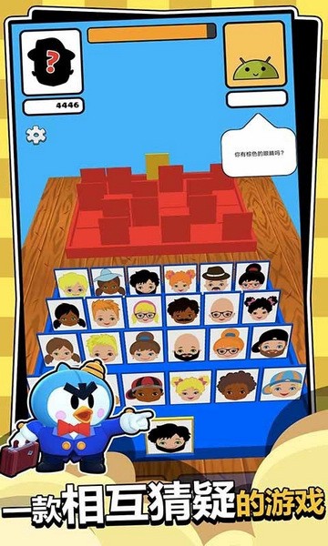 猜猜我是谁是一款简单有趣的双人休闲小游戏。这款游戏的玩法很简单,双方玩家各持一定数量的卡牌,通过互相提问来去掉对方手中的卡牌直至各剩下最后一张,然后说出对方手中卡牌样貌特征。虽然玩法看起来比较简单,但游戏内的卡牌数量和种类都有很多,因此能够玩出的花样还是很多的,并且游戏开放了联机功能。
