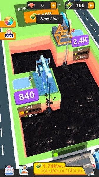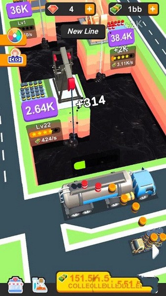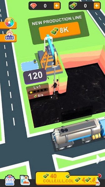 当你积累到一定数量的金钱时,你可以购买新的装备来提高收集效率。 您还可以聘请经理来帮助您提供整个公司的运营。 不断发展和加强您的石油公司,直到它成为世界上最大的石油公司。