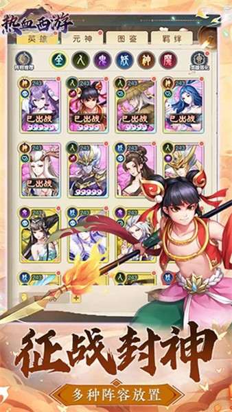 游戏中玩家可以收集封神英雄人物来搭配自己的专属阵容,在体验丰富感人剧情的同时,也能感受游戏中将各路封神将领招入麾下统领三军带来的可玩性和成就感。