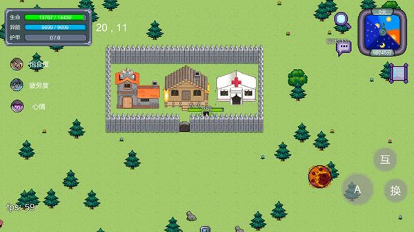 怪物狂潮开局依旧是收集木头石头,打开科技树解锁石斧(砍树挖坑用)弓(前期主要武器)铁块(后面造武器需要用到)铜块(子弹需要)