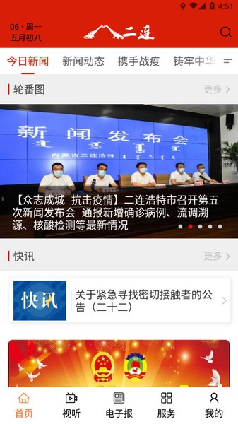 掌上二连app是一款专为内蒙古二连浩特地区居民用户打造的线上资讯阅读和本地生活类应用软件。这款软件能够为用户提供当地最新最热门的资讯信息,发生在社会各方面的消息都会被报道在软件上,用户可以通过这一款软件就知晓当地社会上发生了什么。同时,软件还刊载了电子版的内蒙古日报,当期和往期的电子报都可以在软件上浏览查阅,将纸质版报刊的排版原封不动地呈现在手机软件上。此外,软件上也有视频类型的资讯,为观众带来更加直观的播报体验,并且还有直播栏目可以收看。通过互联网,软件将线上线下的资源进行整合共享,为用户搭建更加便利的渠道来办理事务,将本地的便民生活服务和政务服务功能整理并开通线上办理渠道,为民众提供快捷的渠道,让用户在当地的生活更加舒适方便。