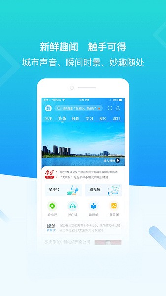 板块基于县内媒体资源,打造集图文、视频、广播、电视、电子报、长图、直播等功能于一体,纳入星沙号、电视台等本地重要官方媒体,以及星沙观察、星沙时报等本地媒体资讯公众号,是长沙县最全面、最权威的资讯融媒阵地。
