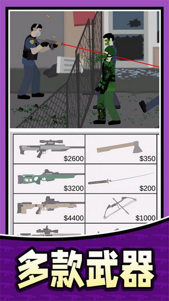 ·选择你的武器,有钱的僵尸等着你去杀,自由冒险