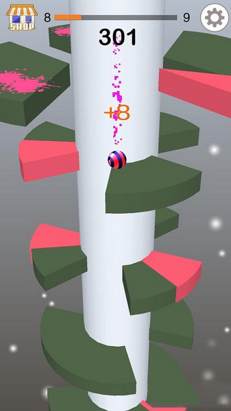 1、通过在屏幕上水平滑动手指来旋转螺旋迷宫,以引导跳球穿过螺旋塔中的间隙;