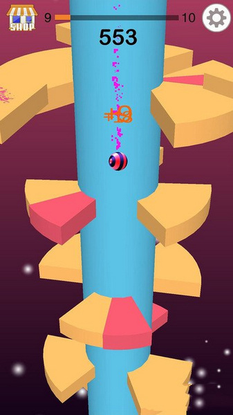 跳球掉落是一款非常有意思的跳跃游戏,玩法简单但考验反应力。你需要通过滑动屏幕旋转台面,让小球不断下落穿过关卡,避免碰到红色木板。每过一层就能得分,越往下挑战难度越大。游戏设计得很吸引人,特别是五颜六色的宝塔和螺旋迷宫,视觉效果挺不错的。