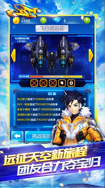 全民飞机大战游戏中新增了更多关卡和全新战机合体玩法,玩家可以与好友合作挑战BOSS,展现飞行技巧。全民飞机大战强调简单易上手的操作,同时注重玩家间的社交互动,让玩家体验全新的联机模式。丰富多样的敌机、道具和萌宠系统为游戏增添了更多乐趣,让您在挑战中感受到不同的刺激与挑战。快来加入这场热潮,展示您的飞行技巧,成为天空王者吧!