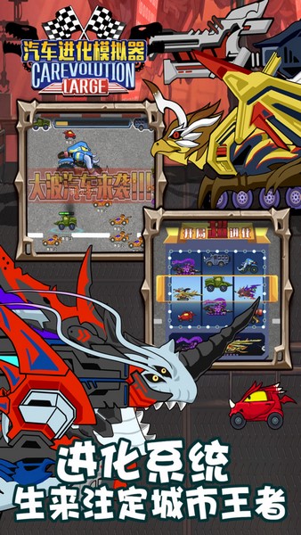 1、一步步的战役下去,你的汽车会不时的进化下去。进化系统能够必定城市的生态系统,纵情的应战吧。