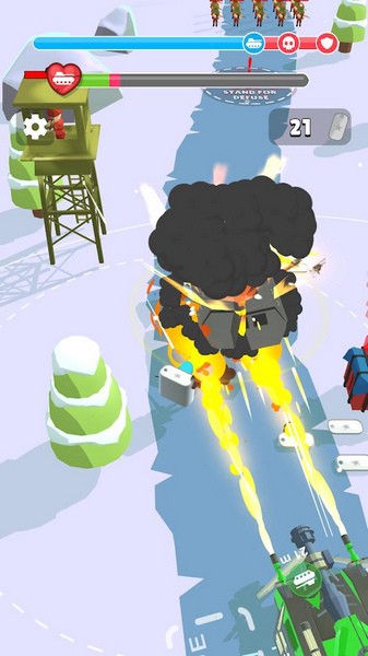 坦克指挥官3D陆军突击破解版是一款非常有趣的3D卡通坦克对战游戏。在这款游戏中玩家可以组装并驾驶自己的坦克加入战场,在偌大的城市中与其他的坦克展开激烈的大战,运用灵活的走位和精准的射击来拿下敌人。游戏的玩法简单,轻松易上手,并且画面风格也很不错,在视觉上有不错的体验。本页面提供免广告的破解版。