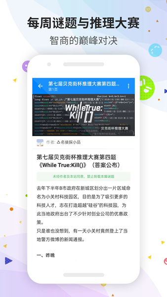 4.与大家分享你的原创作品,还可以认识许许多多推理同好,而每年定期举办的网络推理大赛更是考验与证明你推理能力的最好时机