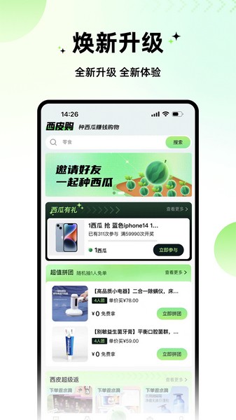 软件特色包括每日分红、生活优惠、一键创业、邀新有礼、新人千元大礼包以及爆品特卖等。特别是种西瓜游戏让用户通过购物和分享获得奖励,增添了互动乐趣。西皮购不仅是一个购物平台,更像是一个充满活力的社交圈子,用户在这里不仅是消费者,还能成为受益者,轻松实现财务增长。