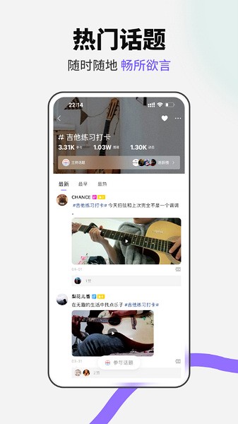 3、吉他话题,这里面就有让你感兴趣的话题,让你就能想要了解都在这里面