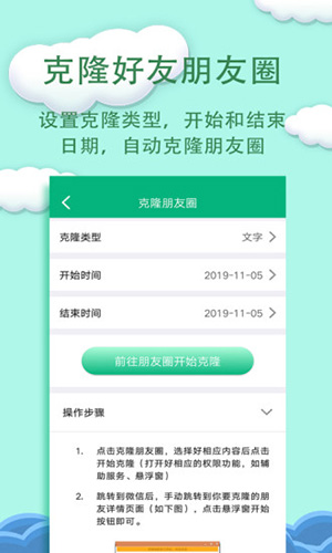 3.搭配了克隆好友朋友圈功能,只需设置克隆类型及开始和结束的时间,就会自动克隆朋友圈;