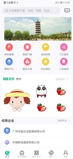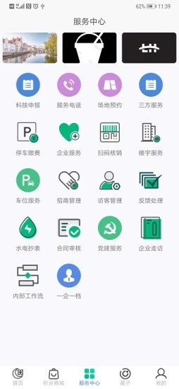 【应用拓展丰富多彩】APP目前内置了“智慧党建”、“园区三方服务平台”等拓展应用,期待您的探索!