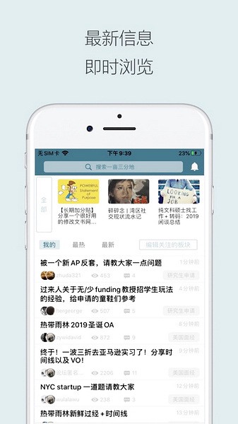 一亩三分地留学论坛app是一款非常好用的论坛app,顾名思义它就是专门为广大留学生们打造的, 在这里汇集了超多在海外学习的学子们,大家一起在这里一起聊天交流,大家可以发布帖子来分享自己在外留学的学习、生活以及就业等方面的信息,给其他人传授一些经验和干货,有什么问题也可以发布帖子询问,同时还帮助大家在异地找到自己的老乡。