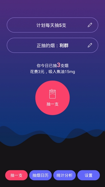 戒烟计划:制定自己的每日抽烟计划,超出吸烟计划会给您提醒哦!今日抽烟是您贴心的戒烟伴侣!