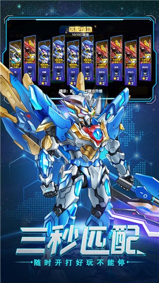 1、每个机甲战士都有不同的属性,选择自己钟意的战甲,方便你用心培养和改造。