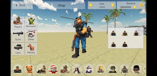 2、不同种类的武器,奇怪的角色,汽车,坦克和直升机。您还可以在大量对象上生成各种映射