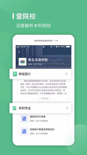1、提供招生院校和专业深度解析,更便捷、全面的查询报考专业和院校;