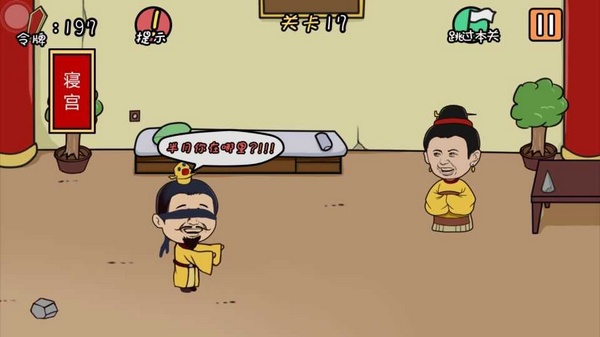 这款游戏叫《总有刁民想害朕》,听起来就很有意思。游戏的画风很搞怪,剧情也很魔性,玩家要扮演“刁民”,想办法让皇帝出糗甚至“干掉”他。游戏的操作很简单,点点就能玩,但关卡设计脑洞很大,得动不少歪心思才能过关。