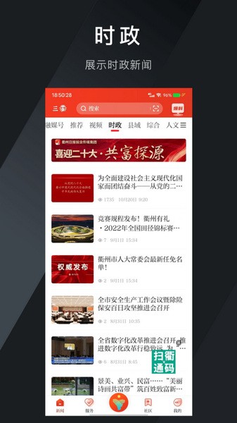 三衢app也可以叫做掌上衢州,是一款专门为衢州本地的居民打造的新闻资讯软件,软件主要是聚焦于衢州本地生活,为用户们提供 了全新的新闻服务、电商购物、生活服务、政民互动、论坛互动等非常丰富的功能,不仅为衢州当地的用户们带来了非常方便的生活服务,同时也让外地的用户们可以轻松的了解到衢州当地的人文、竞技和时政等方面的资讯,让您足不出户就能知晓天下事!