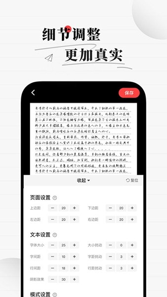 软件操作简单,用户可以根据需要调整字体大小和间距,导出无水印的文档。应用界面友好,还有丰富的纸张样式可供选择,甚至可以模拟真实拍摄或扫描件的效果。此外,定期更新增加了更多实用功能,比如支持不同字体设置、新增打印纸张以及更逼真的手写体。