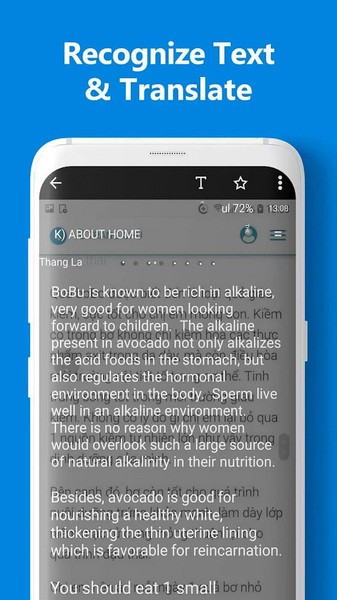 拍摄任何带文字物体的照片,或从你的图库中选择一张照片。该应用程序将扫描文本并将其翻译成任何语言。