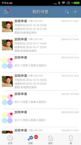 7、可通过客户端直接进行请假,加班,忘刷卡等流程的申请和核准。