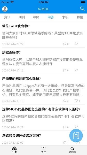 这个软件的功能挺多的。首先是学术期刊部分,里面有Nature、Science这些顶级期刊的最新论文信息,每天还会更新,非常方便查阅。其次是有行业资讯,会同步他们旗下的微信公众号“X-MOL资讯”,跟踪全球化学和生物医药领域的重要科研进展和新闻事件,还有中文摘要和深度分析,工作日都会更新。