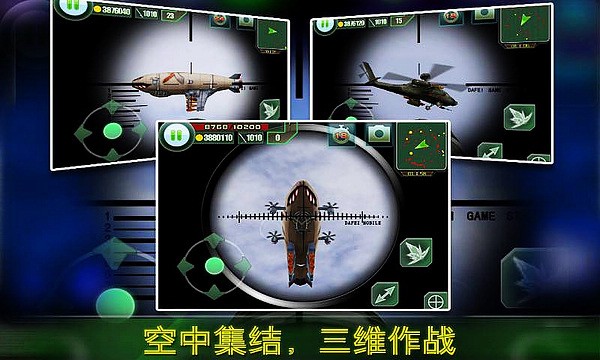 游戏提供机场、山丘、基地三个场景,配合晴天、雾天和夜晚等天气模式,以细节丰富的3D效果呈现出来。