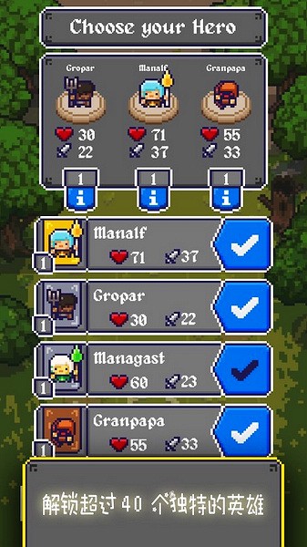《国王之手》中文版(King Crusher)是一款像素风格的动作RPG闯关游戏,玩家扮演国王,通过派遣军队征战来扩大领土。游戏提供经典和冒险两种模式,还有12种英雄角色可收集,玩家需制定策略应对随机事件。
