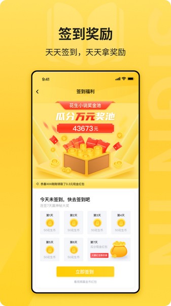 花生小说app是一个拥有丰富网络小说阅读资源的手机应用软件。这款软件收录了全网最新最热门的网络小说,各种类型的小说都有,满足用户的追书需求,并且还提供便利的手机小说阅读器。用户可以通过分类搜索来寻找自己喜欢的小说,每本小说资源都是完整的,都已经更新到最新章节,并且会实时更新新的章节,当更新后会自动推送通知用户及时追书,不让用户错过任何一章。用户可以将喜欢的小说收藏到自己的书架中,打造自己的个性书架,同时系统会根据用户的书架特色来智能推荐书籍给用户,让用户不再陷入书荒,每天都有新的章节可以看。此外,软件还会由专门的编辑来编写各种类型的榜单,根据热度、分类等不同的评判标准来生成书单,用户可以随时查看来寻找新的书。