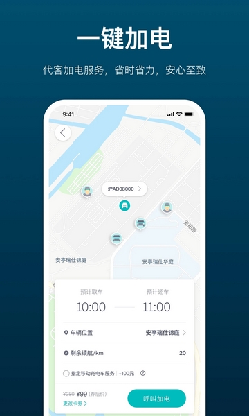 5、一键呼叫加电,这个应用可以为车主提供代客加电服务而不用车主亲自动手;