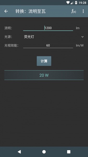 照明计算器破解专业版是一款能够为用户们提供照明领域的计算服务的软件,囊括了单位转换以及计算、相关公式查询等在内的多项功能,大家也可以快速了解到相关的照明要求,以及不同规格灯泡的参数等等。软件使用简单又方便,操作也非常的简单,清爽简洁的界面更是大大降低了用户们的使用难度,因此也相当容易上手,绝对可以轻松满足大家在照明方面的计算需求。
