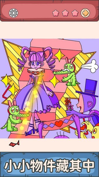 在找一找玩法中找到被隐藏起来的各种物件图案,找到越多,关卡的星星数就越高
