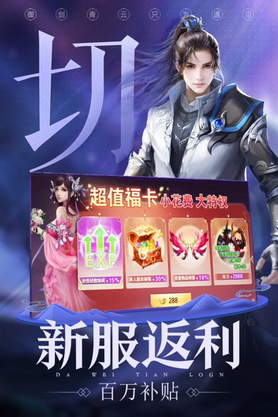 天命传承,开放冒险,帮派城战乐趣无穷,自定心法路数,无招胜有招,深度体验多面战斗,法宝神符由你定,百套时装随心搭,打造个性造型。