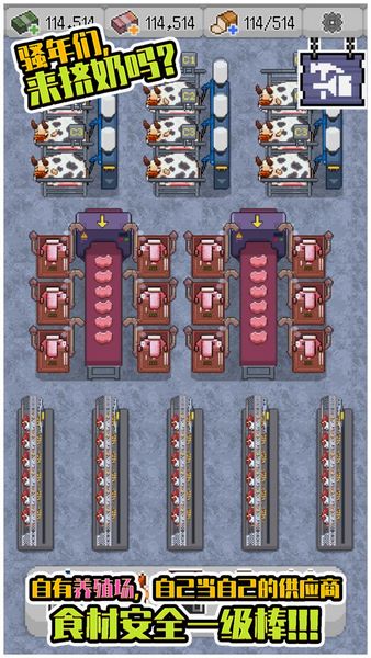 自有养殖场,机械化生产,食材安全一级棒!(当然了前期还是得手动点点点,不然一开始就全自动化了玩家老爷们玩个球球啊