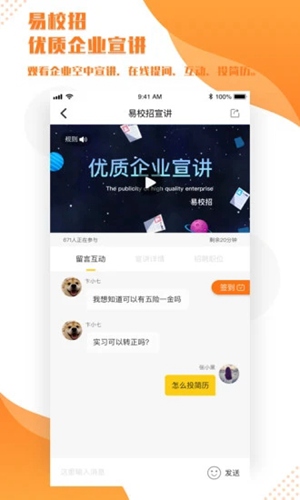 1、观看优秀企业宣讲内容、时间自由支配、企业资质平台经严格筛选、快速有效投递简历