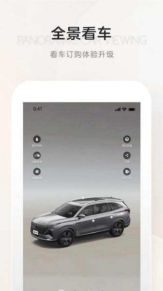 【展厅】虚拟体验,只能车控,产品信息,预约试驾,立即订购,金融服务