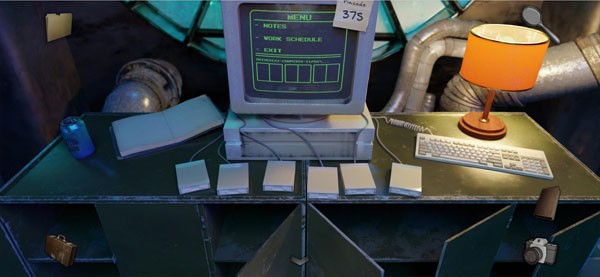 3、激活显示器观察上面的控制面板,再根据右边柜子纸杯上的提示Aarron按顺序点击打开设施大门。